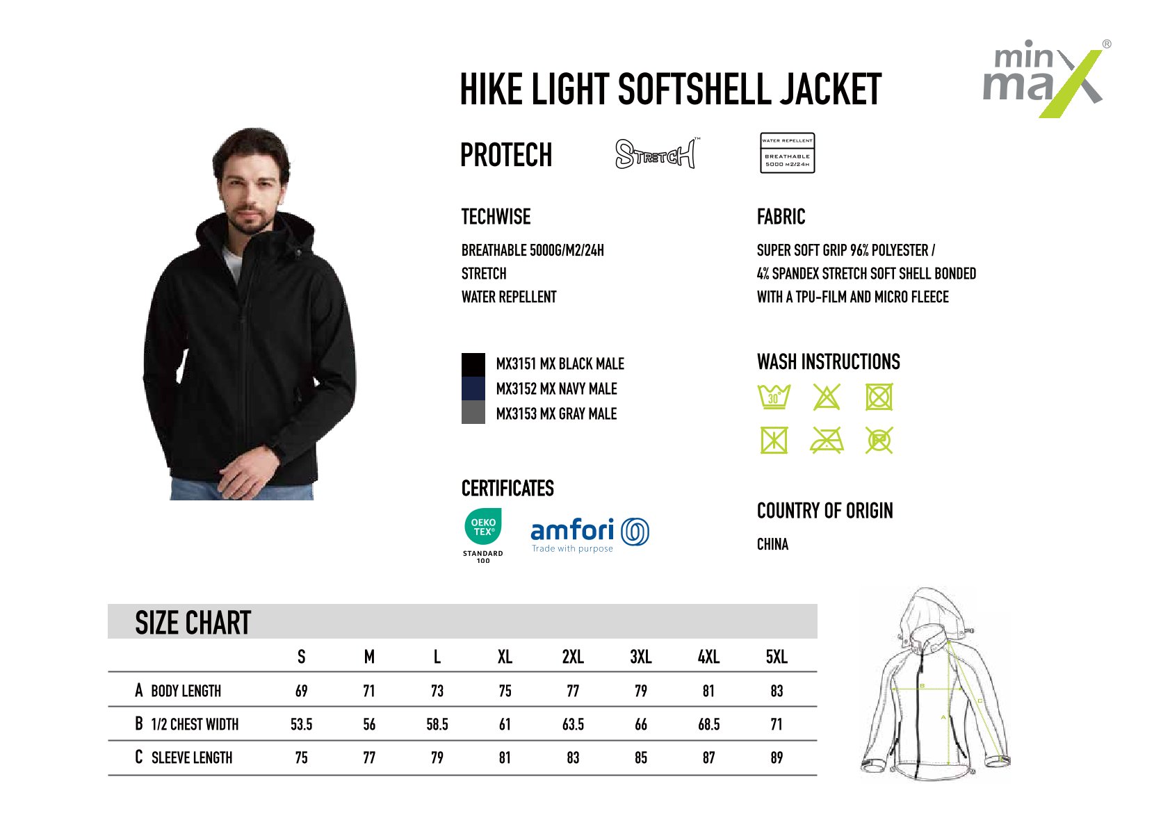 • Hike Max 3layer Softshell Jacket Black Male