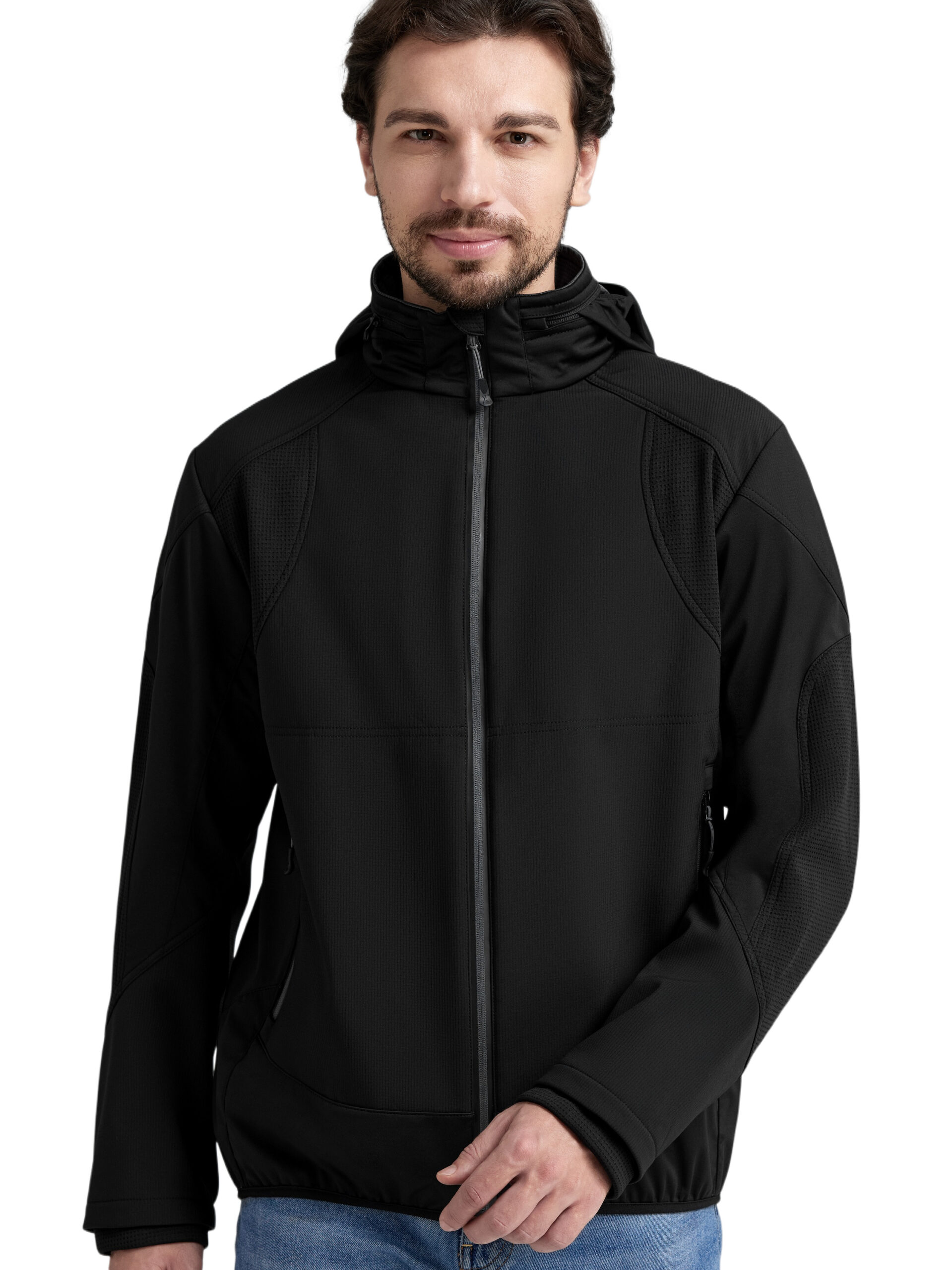 • Hike Light 2layer Softshell Jacket with detachable Cap Black Male