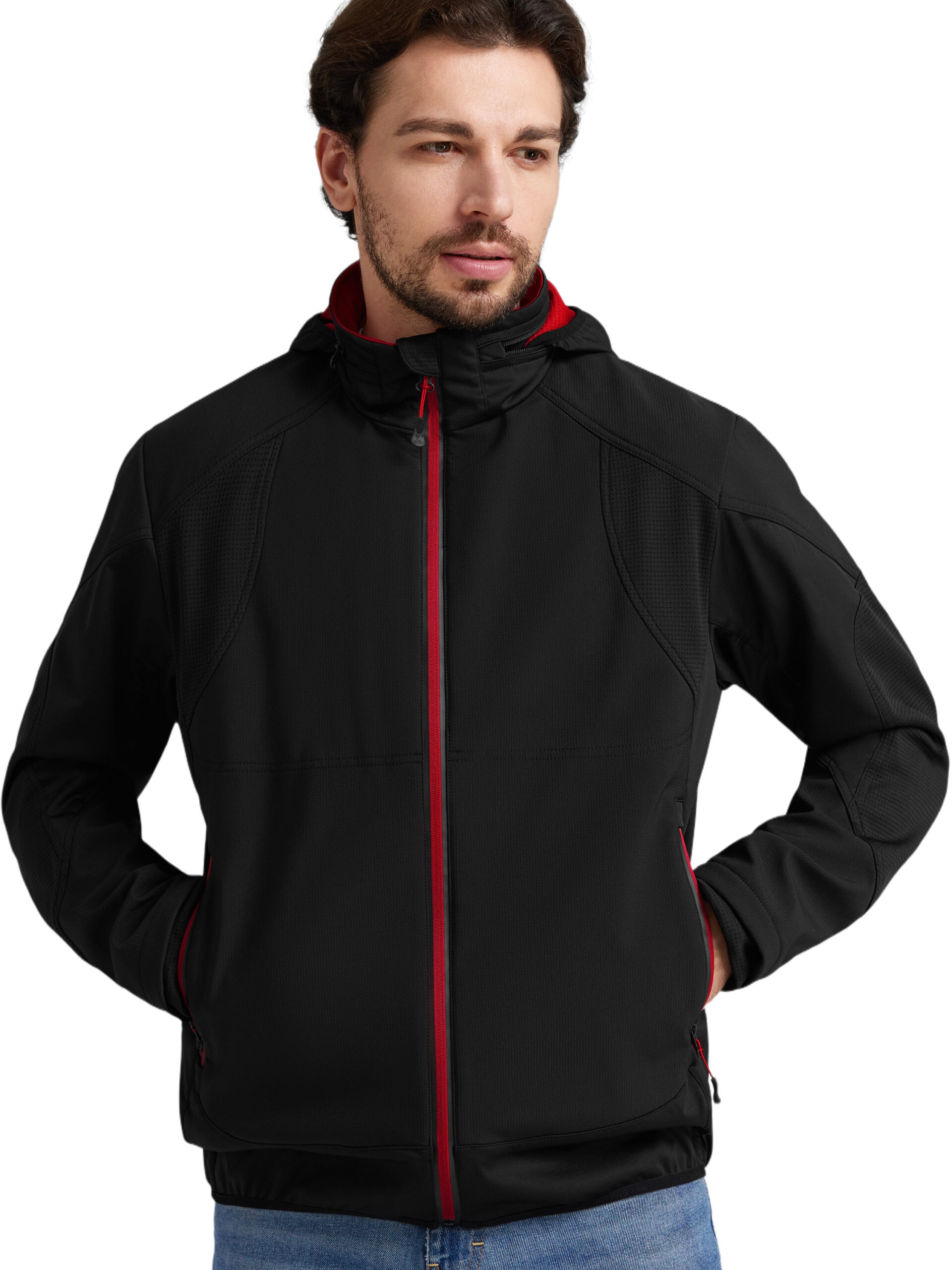 • Hike Light 2layer Softshell Jacket with detachable Cap Black Male